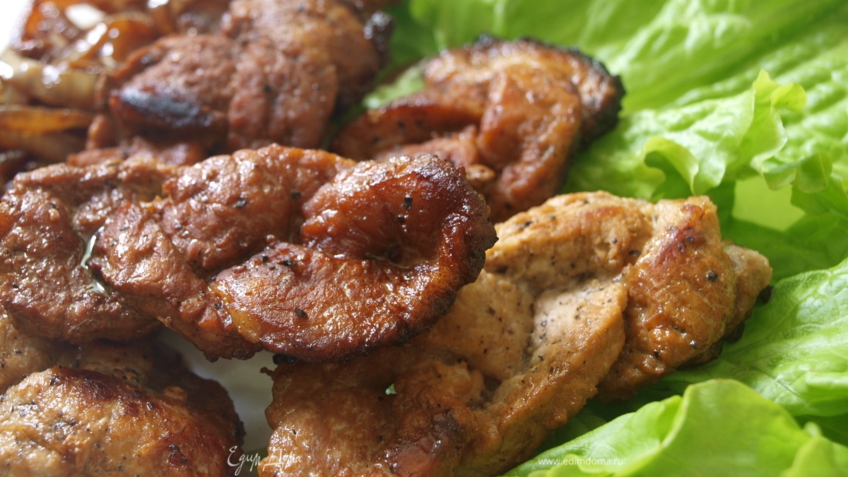 - Шаг 1Свинину вымыть, обсушить, отбыть с двух сторон, посолить и поперчить. На каждом отбитом куске мяса сделать два надреза, не дорезая до конца. Заплести свинину виде "косички" и скрепить кончики зубочисткой. Сложить "косички" в миску, добавить нарезанный кольцами репчатый лук, выдавить сок лимона и оставить мариноваться на 30-60 мин. Сковороду сильно нагреть, налить немного раст. масла и обжарить "косички" на сильном огне с двух сторон. После того, как обжарили на второй стороне, огонь убавить до минимального, влить чуть-чуть воды, накрыть крышкой и потомить 5-7 мин. Готовые косички подавайте с любимой зеленью!