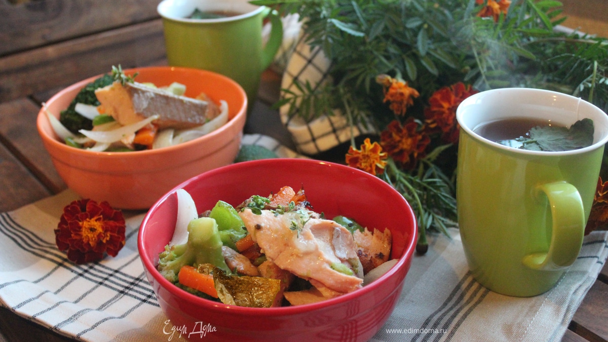 Приготовьте себе и близким очень полезный и легкий ужин. Овощи и рыба — это классика для тех, кто бережет фигуру, а чесночное масло Biolio — настоящая находка для тех, кто следит за здоровьем. Оно придаст не только потрясающий аромат овощам и рыбе, зарядит dас энергией и хорошим настроением, но и обогатит dаше блюдо полезными веществами.