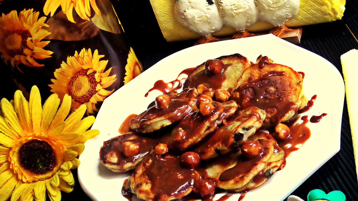 Воскресным утром разбудите своих домашних ароматом оладий. Роль классического изюма сегодня выполнит черника, а соус из припрятанной заранее растопленной шоколадки сделает блюдо праздничным!