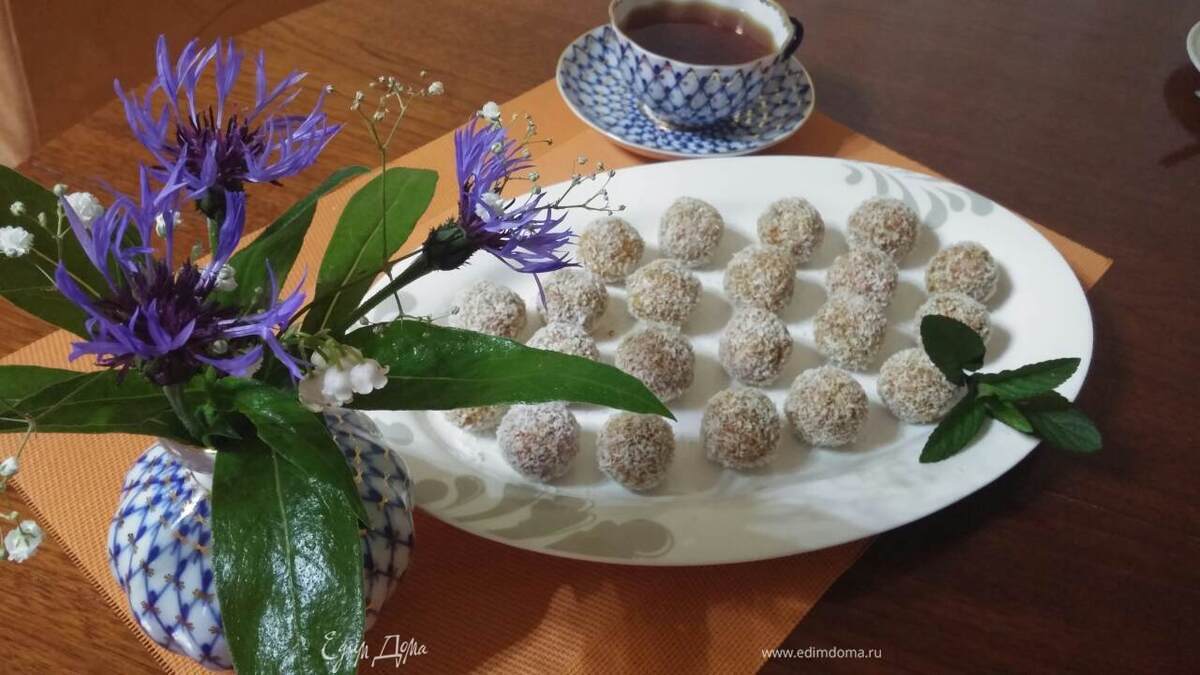 Каждую конфетку обвалять в кокосовой стружке или в любых других орехах. Приятного аппетита!