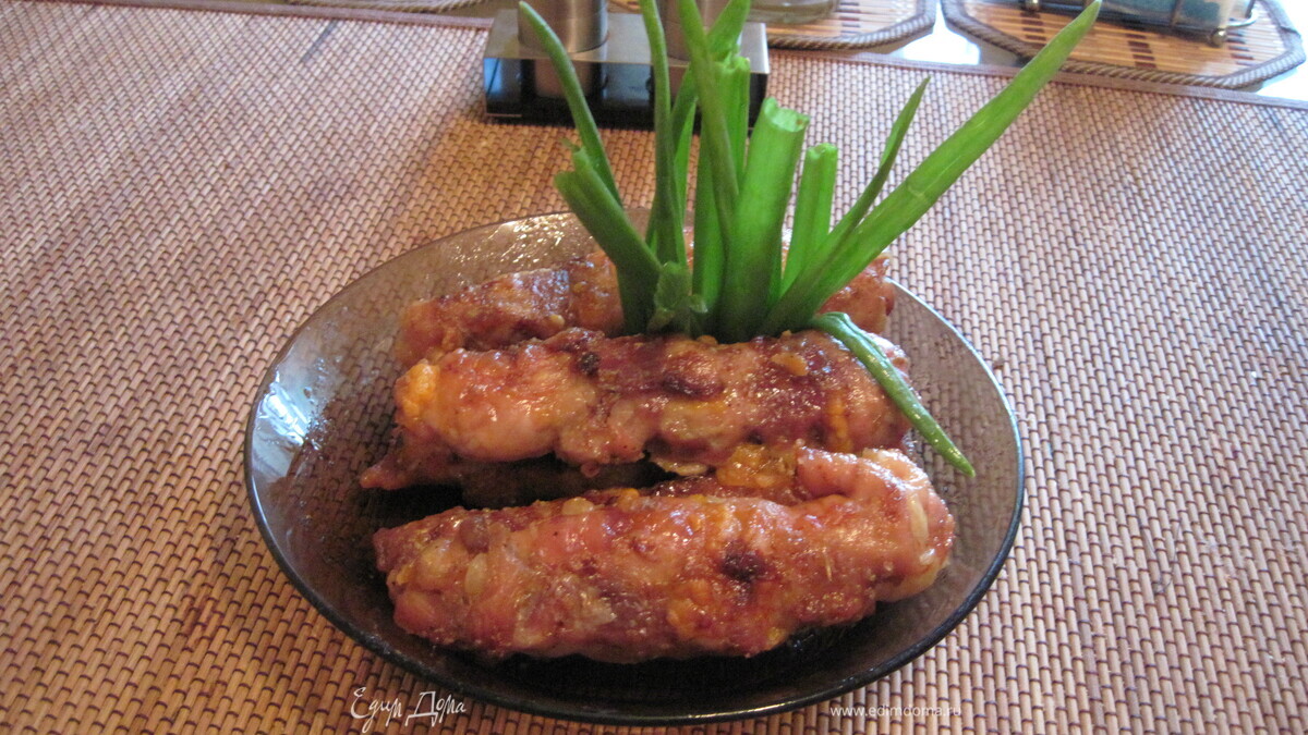 - Шаг 1Из бедер извлечь косточку. Отбить через пищевую пленку.Посолить ,поперчить.Выложить тертый сыр. Ананас нарезать на ломтики . Один ломтик ананаса выложить на краешек отбивной и туго завернуть рулет.Сверху нанести майонез. Запекать 30-40 минут при Т 220 С. Украсить зеленью.