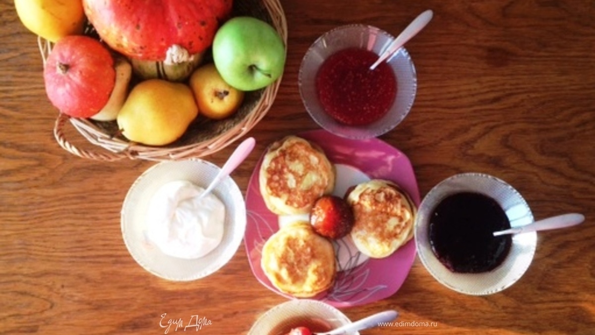Очень простой, но от этого не менее вкусный завтрак. Из-за отсутствия достаточного количества времени, приходится выкручиваться. С вечера приготовила тесто на оладьи, поставила в холодильник, утром достала, пожарила порцию, и два дня к завтраку