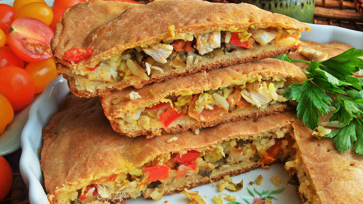 Закрытый пирог с рисом и курицей