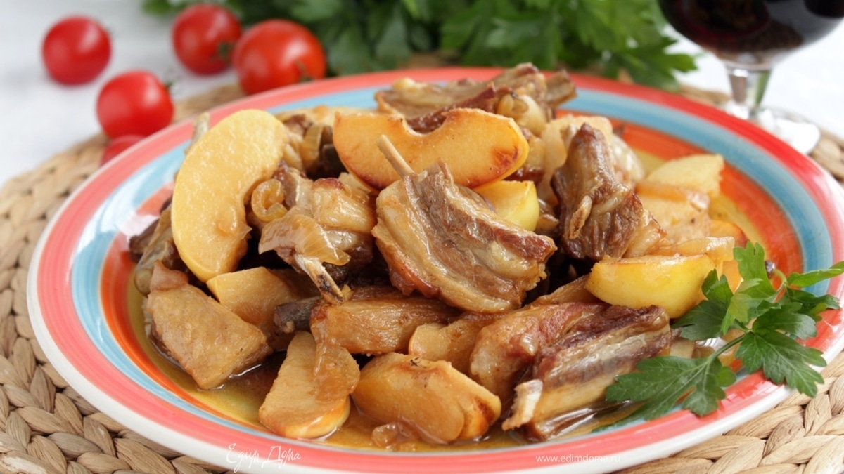 Бараньи ребра в белом вине с айвой