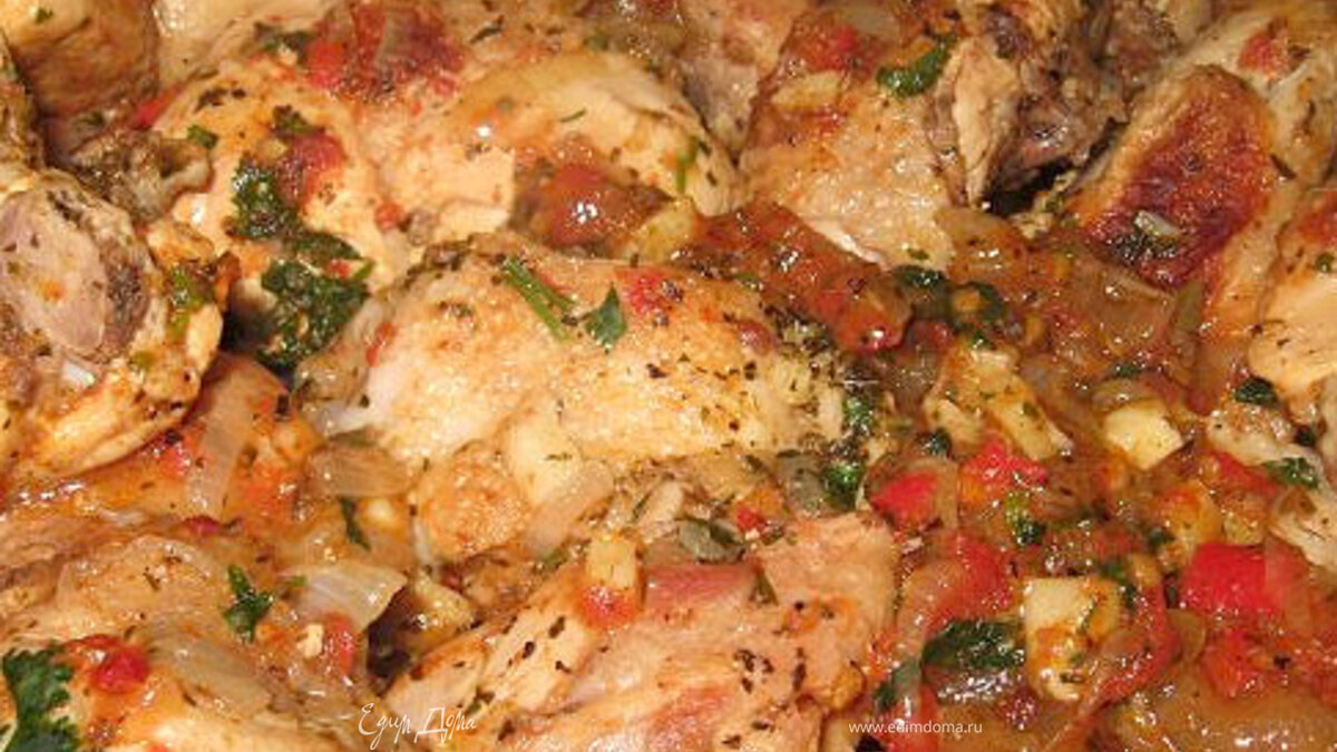 - Шаг 1Этому рецепту меня научила грузинка. Именно так они делали в своем доме. Курица, помидоры, лук, зелень. И никакой картошки. Порезать лук полукольцами, отправить в казан на небольшой огонь, он должен стать прозрачным, не не пригореть. С кусочков курицы снять кожу, обжарить в сковородке на сильном огне, добавить к луку. Залить горячей водой, засыпать специями, тушить под крышкой. Помидоры залить кипятком, снять кожу, порезать полупластинками, добавить в казан минут через 20. Еще через 20 минут туда же положить свежей зелени и тушить еще минут 20-30. Дать настояться.