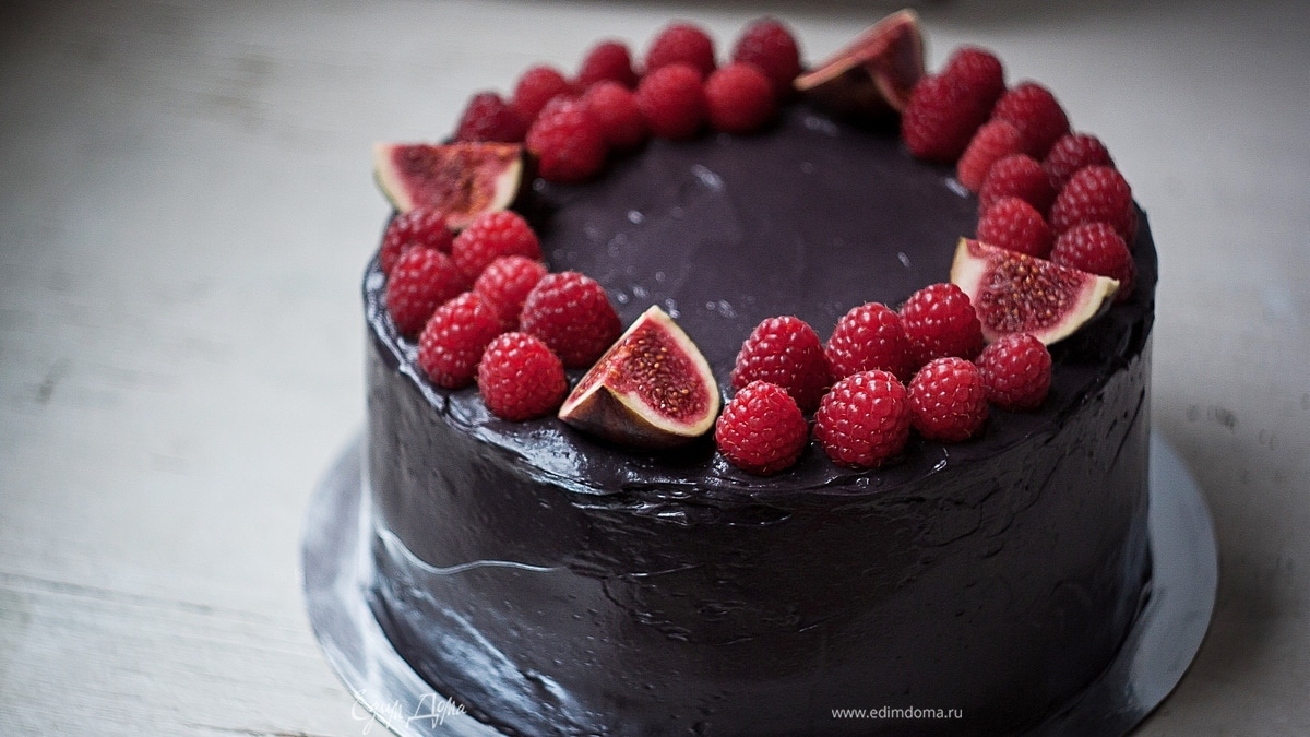 На самый верхний слой высаживаем весь оставшийся масляный крем и распределяем его ровным слоем по всей поверхности торта, обмазывая по возможности и бока. Ставим торт в холодильник на 30 — 60 минут. Затем обмазываем весь торт толстым слоем сырного крема и выравнивает верх и бока с помощью специального шпателя или лопатки. Украшаем по своему желанию. У меня это свежий инжир (очень люблю его) и наша деревенская малина. - Шаг 8