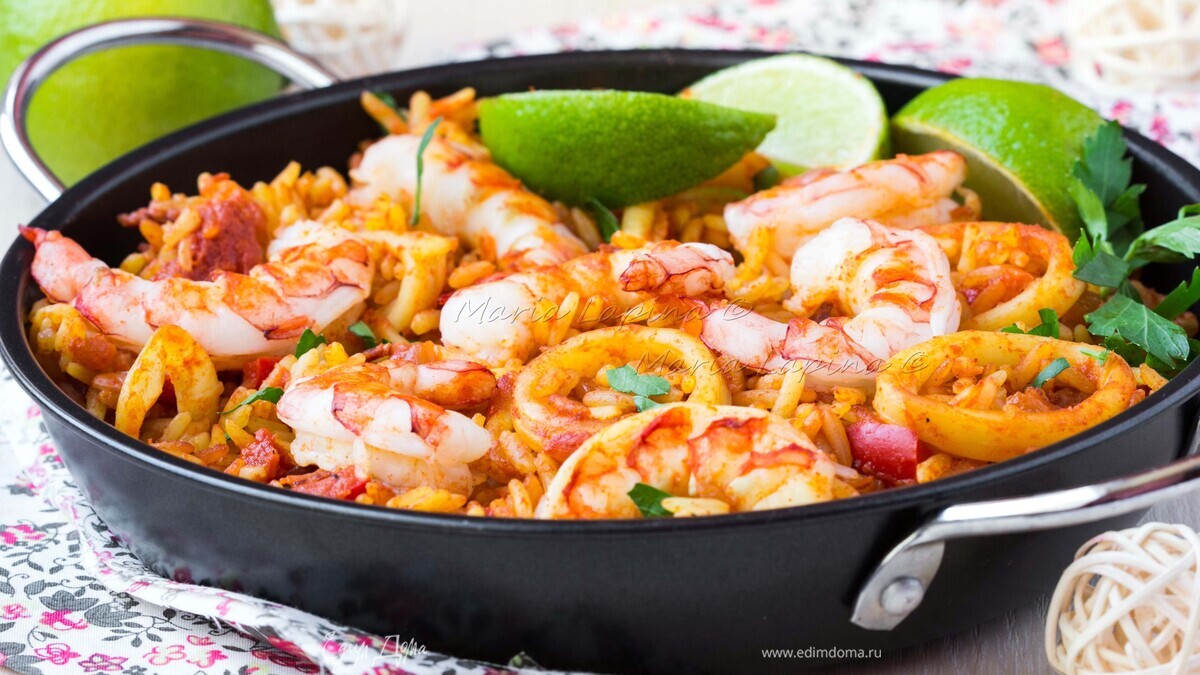 Паэлья с морепродуктами и чоризо