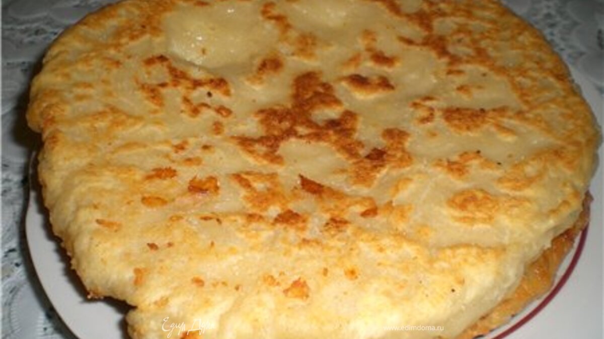 - Шаг 1Смешать все для теста. Муки столько , чтобы тесто отходило от рук. Сыр натереть на крупной терке + 1 яйцо. Тесто разделить на 2 части. Раскатать лепешку толщиной 1,5 см. В центр выложить половину начинки (горкой), защипить края в центре над начинкой (как мешочек) и еще раз раскатать тесто (толщина 1,5-2см). Тоже проделать и со второй лепешкой. Противень смазать маслом, выкладываем лепешки и в духовку минут на 30 150-170С