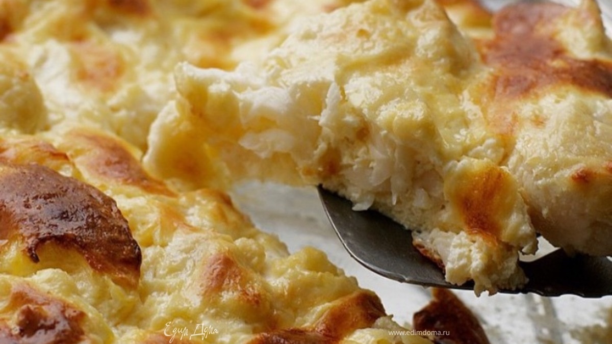 Форму смазать сливочным маслом, выложить массу, убрать в горячую духовку, разогретую до 180°С. Запекать 25 минут до появления золотой корочки. Подавать со сметаной.
