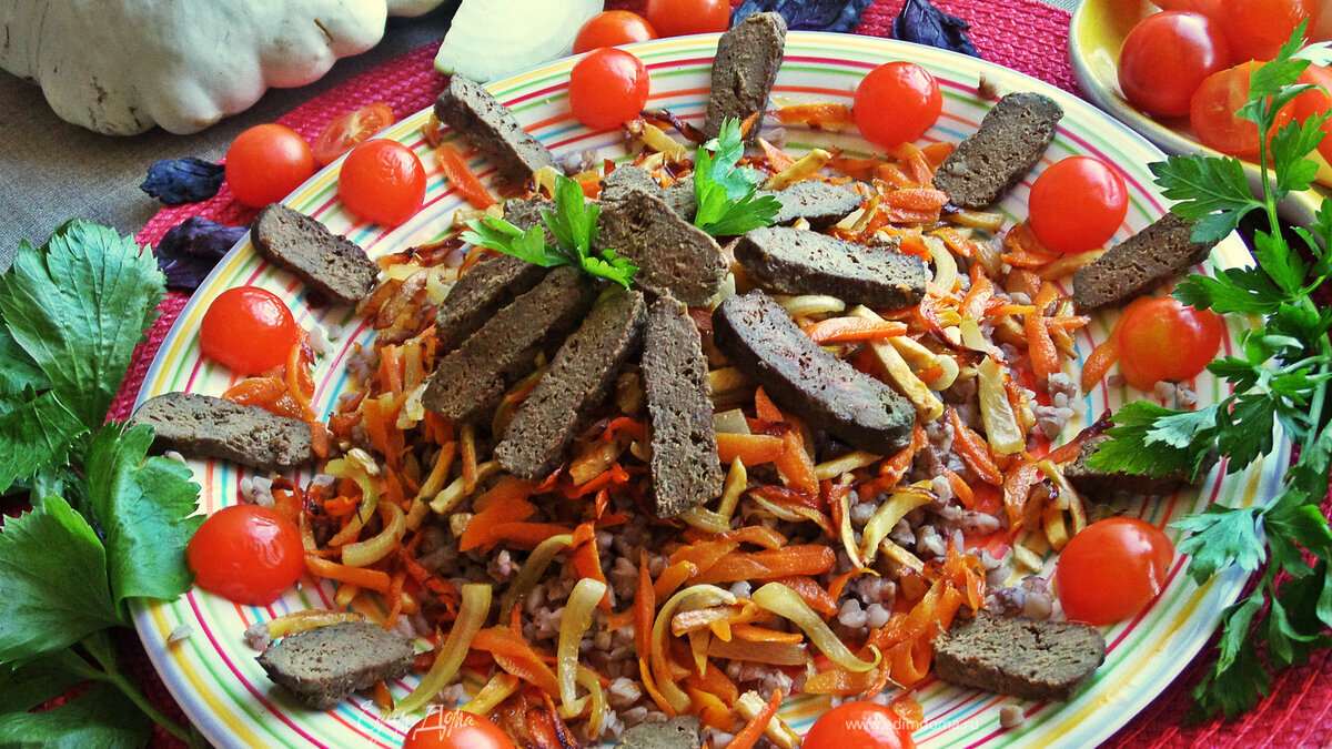 Ой, как красочно и полезно!!! А у нас сегодня индюшиная печень была на обед ( и гречка тоже), вот ведь совпадение!!!😂