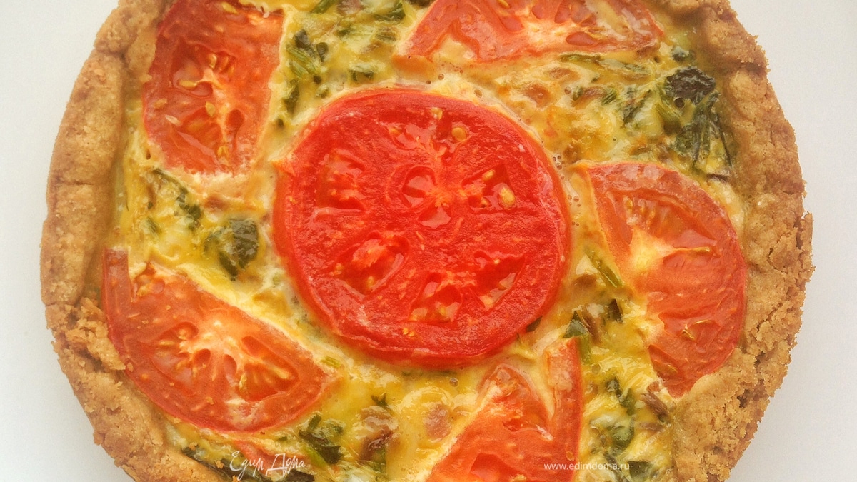 Киш с помидорами, моцареллой и шпинатом
