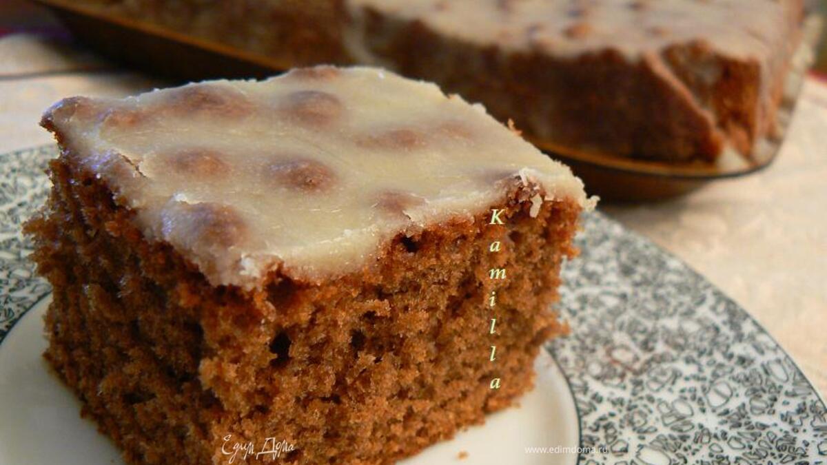 - Шаг 1Смазать маслом или застелить пекарской бумагой форму 28х18 см. Просеять муку в миску, добавить разрыхлитель, сахар, перемешать. Добавить масло, яйца и кофе. Хорошо взбить миксером. Затем переложить в подготовленную форму и разровнять верх. Выпекать в предварительно нагретой до 180 духовке 35-40 мин, затем вынуть и дать постоять 10 минут. Затем пирог положить на решетку и полностью остудить. Теперь готовим глазурь. Шоколад поломать на кусочки и положить в миску, добавить масло, молоко и сахарную пудру. Поставить миску на водяную баню и нагревать, помешивая, пока шоколад не растает. Глазурь аккуратно переложить на брауниз и разровнять. Затем брауниз разрезать на квадратики. Сверху можно посыпать какао.
