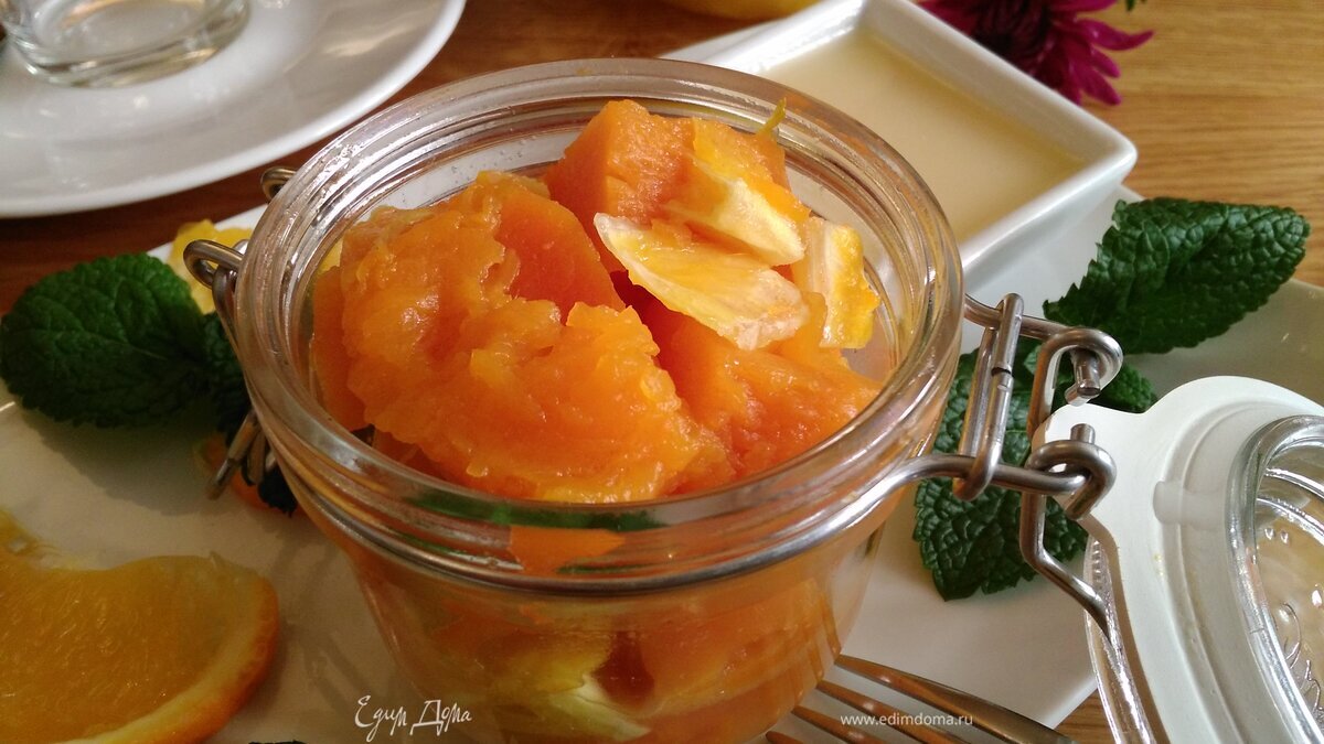 Тыквенно-апельсиновый десерт с медовым соусом