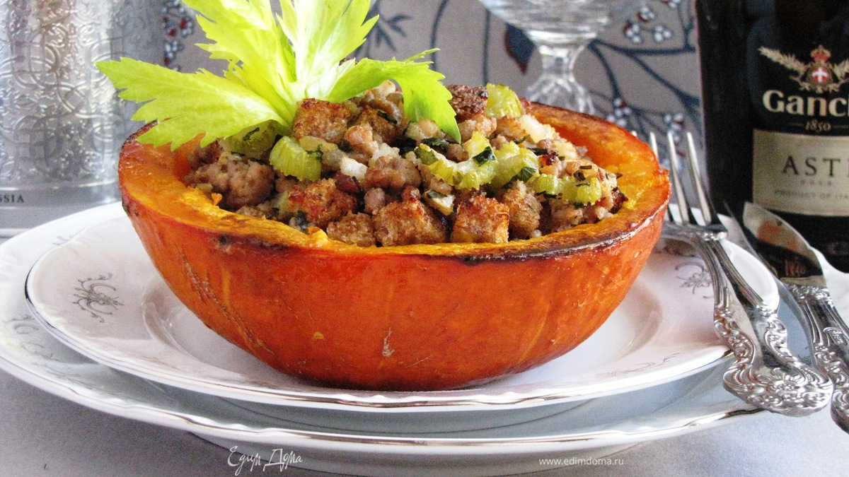 У меня сегодня еще один эксперимент. Тыква, фаршированная свининой, яблоками, изюмом, сельдереем,