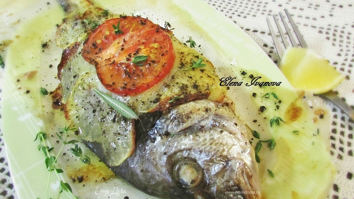 Готовую рыбу извлечь из духовки, перед подачей посыпать ароматными травками. Приятного аппетита!