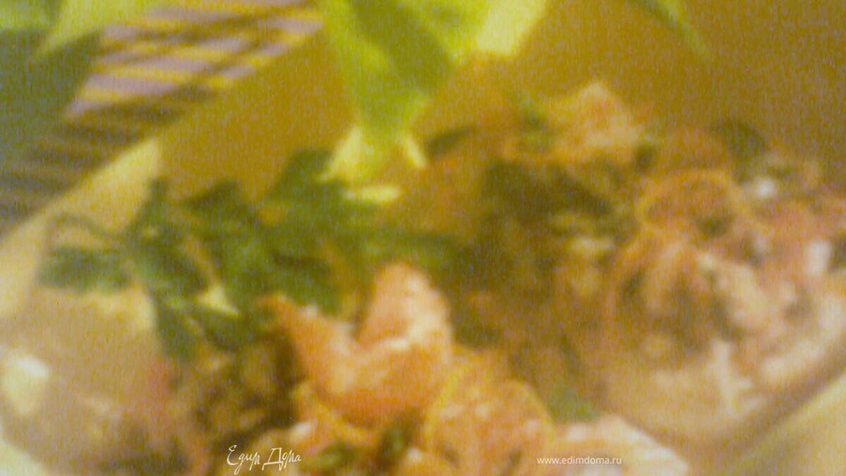 - Шаг 1Рыбу положить в сковороду, подлить пару ложек воды, накрыть крышкой и припустить на небольшом огне до готовности, минут 10-15. Охладить и нарезать длинными полосками. Лаваш разрезать на квадратики шириной 1-8 см и подсушить в духовке, чтоб получились хрустящие чипсы. Кабачки нарезать неочищая наискосок ломтиками толщиной 1 см, запекать в духовке при 180 С, пока они не станут мягкими. Мякоть ананаса, лук и сладкий перец нарезать мелкими кубиками, редьку натереть на крупную терку. Смешать все, заправить маслом и соком лимона. На каждый чипс из лаваша положить ломтики кбачка, полоски рыбы, а сверху полить овощным соусом. Украсить веточками зелени и подавать быстро, пока лаваш не размяк.