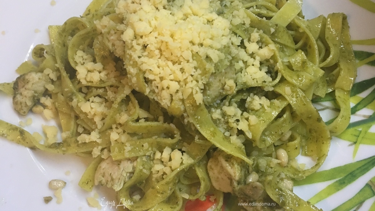 Феттучине с курицей, кедровыми орешками и соусом песто