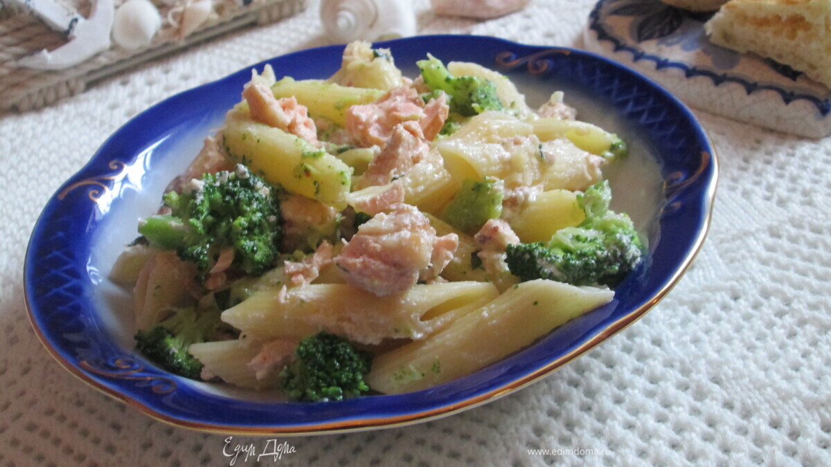 Пенне ригате с лососем и брокколи под сливочным соусом