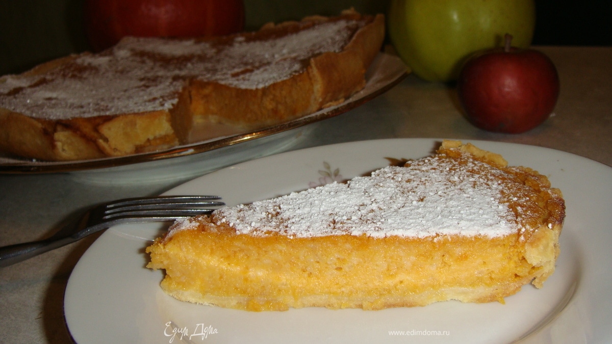 Тарт полностью остудить и вынуть из формы. Сверху посыпать сахарной пудрой.