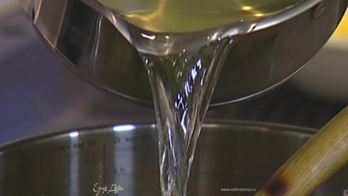 Отправить подготовленные овощи в кастрюлю с костями, добавить перец и лавровый лист, влить 3 литра холодной воды, довести до кипения, затем уменьшить огонь и варить 2–3 часа, по необходимости снимая пену.