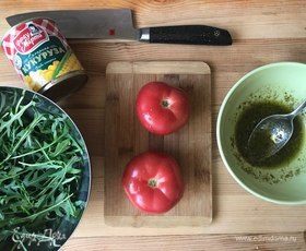 Готовлю соус: смешиваю соус песто и оливковое масло.