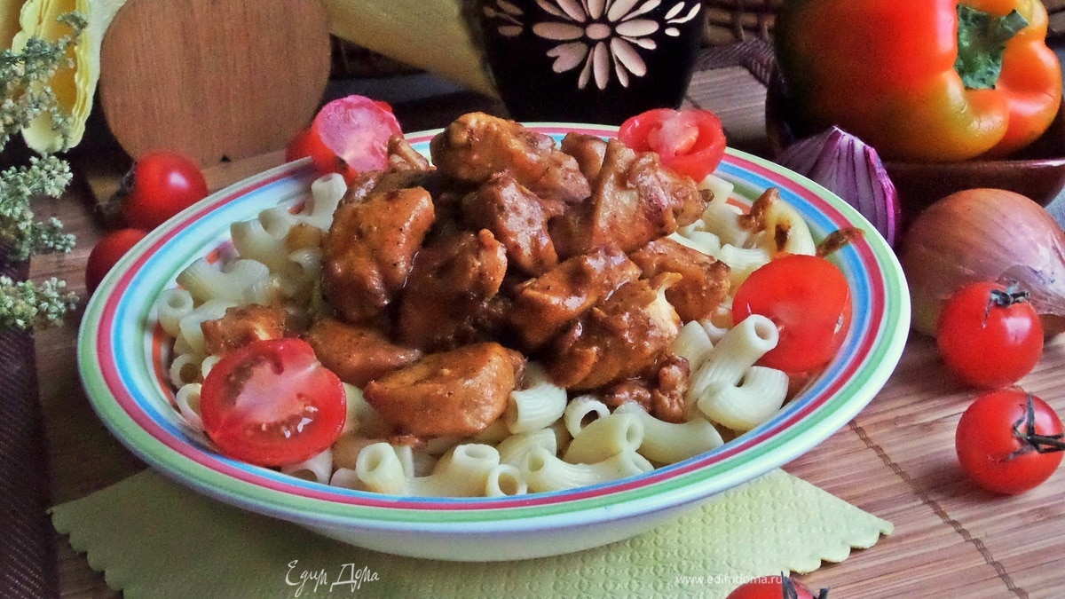 - курица в сливочном соусе, макароны с курицей