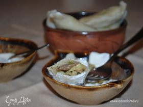 В центр каждого кружка кладем сырный шарик. Соединяем противоположные края и придаем форму полумесяца. Чтобы квери не расклеились, края нужно придавить вилкой. - Шаг 8