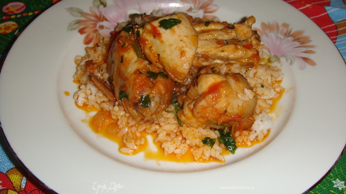 Подавать «Каччиаторе» с рисом или спагетти. Мясо получилось очень вкусным и нежным. Приятного аппетита !