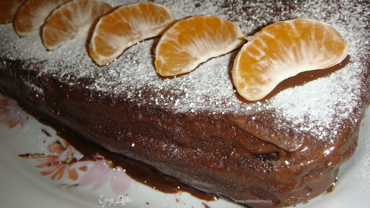 Кекс сверху посыпать сахарной пудрой и украсить мандаринами.