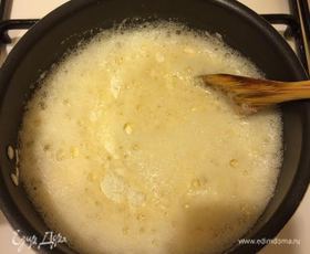 Снять с огня, добавить еще 1 стакан муки и перемешать.