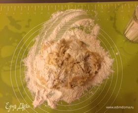 Рабочую поверхность посыпать мукой, переложить и хорошо вымесить тесто.