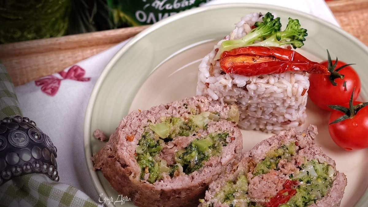 Мясной рулет с брокколи, сыром и вялеными томатами