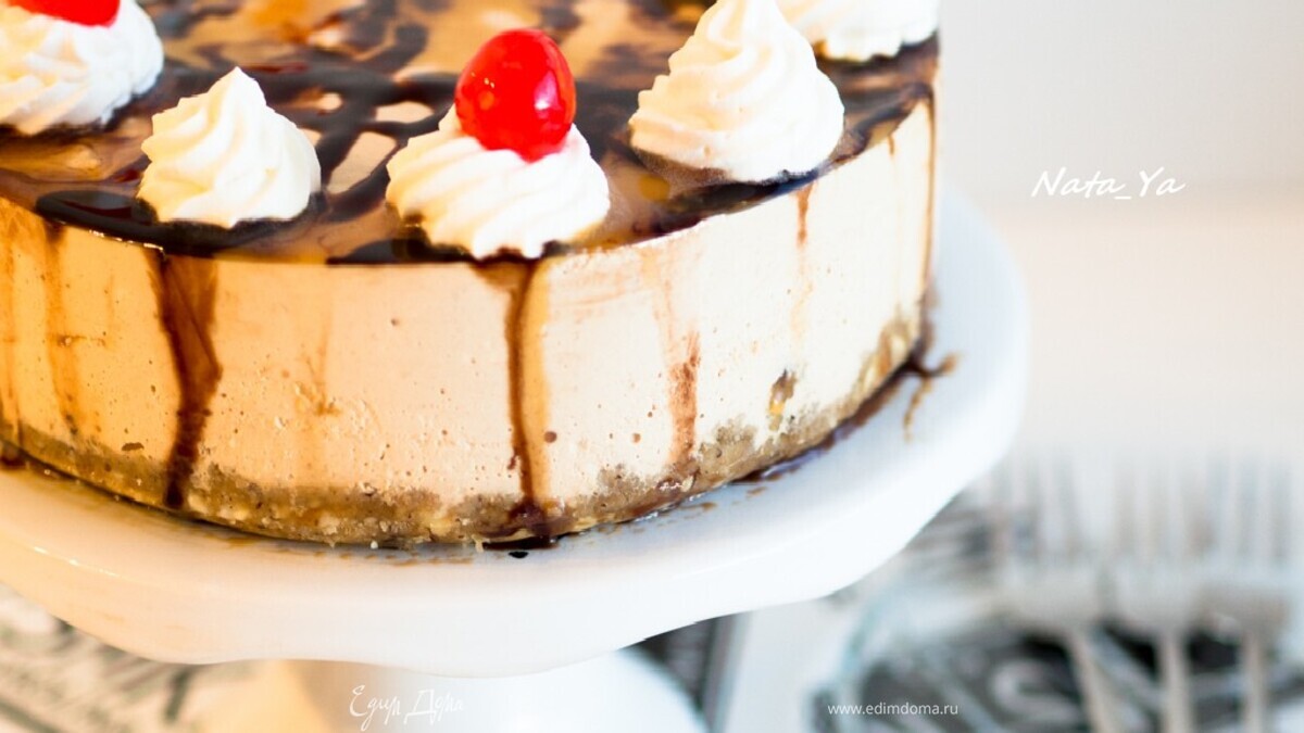 Вынимаем нашу форму с чизкейком из формы с водой. Удаляем фольгу и даем остыть торту полностью. Оставляем на ночь в холодильнике. Перед подачей: 60 г нутеллы, сливки и порошок эспрессо нагреваем, помешивая, чтобы получилась однородная кремовая консистенция. Дать остыть и полить получившимся соусом наш чизкейк. - Шаг 17