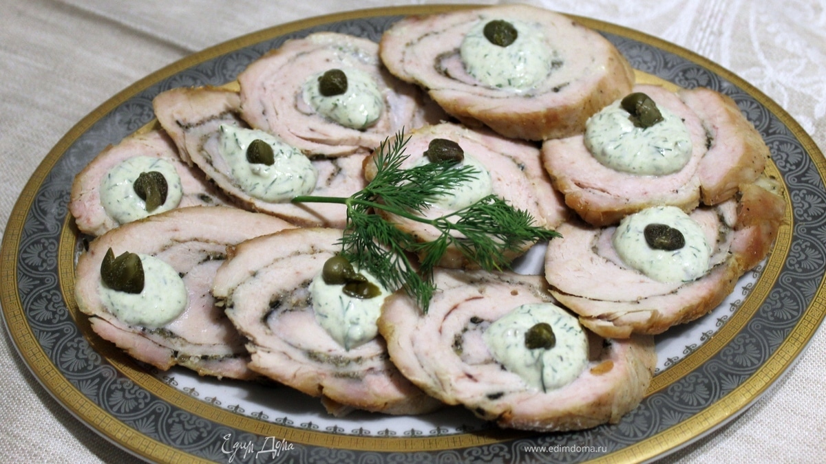 Хочу вам предложить сразу два рецепта — рецепт рулета из филе индейки и пикантный соус с каперсами на основе майонеза ТМ «Слобода»