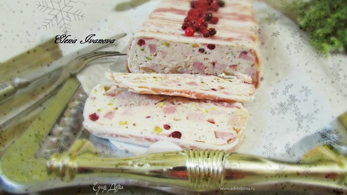 Куриный террин с брусникой, ветчиной и фисташками