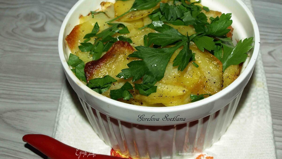 Готовый картофель достаем и подаем горячим. Приятного аппетита!