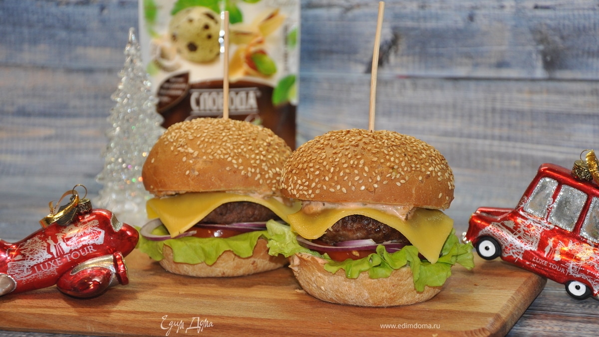 Котлеты для бургеров можно сделать самим, но я покупаю готовые специальные котлеты для бургеров, это ускоряет процесс приготовления, и они ничем не уступают по вкусу.