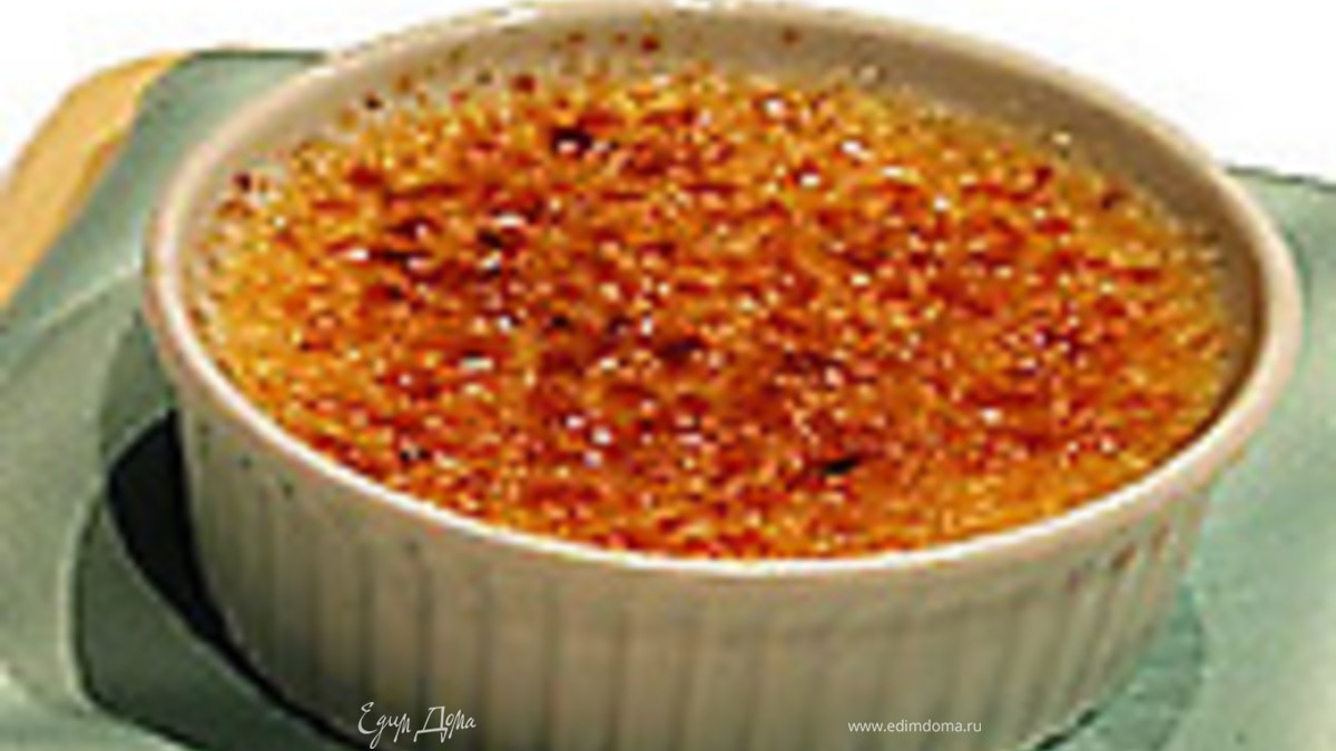 - Шаг 1Разогреть духовку до 140 С. Сливки и молоко перемешать, добавить семена ванильной палочки, подогреть, но не доводить до кипения. Убрать с огня. Взбить желтки с сахаром до однородного состояния. Аккуратно, постоянно взбивая, маленькими порциями ввести сливки с молоком.Вернуть на плиту. Постоянно мешая, прогреть 5 минут. Разлить по небольшим плоским формочкам, в которых будем подавать. Взять глубокий противень, налить в него горячей воды так, чтобы формочки, которые мы в него поставим наполовину оказались в воде. Поставить все в духовку минут на 30. Проверять готовность так: если формочки потрясти, центр должен быть немного жидковат. Главное не передержать, иначе все может превратиться в омлет. Затем достать и полностью охладить в холодильнике. Перед подачей посыпать тростниковым сахаром и поставить под разогретый гриль на 2-3 минуты, чтобы сахар немного расплавился. Долго под грилем держать нельзя. Украсить мятой и свежими ягодами.
