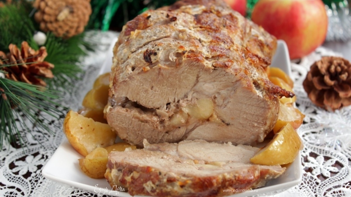Свиная шея, фаршированная яблоками