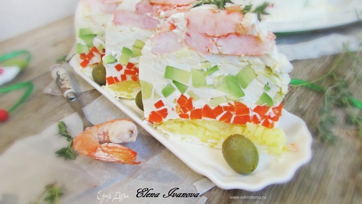 Заливной салат с креветками и авокадо несомненно, украсит и разнообразит ваш новогодний стол. Он нежный и воздушный, сочный и мягкий. А еще он красочный и насыщенный, а главное, очень вкусный.