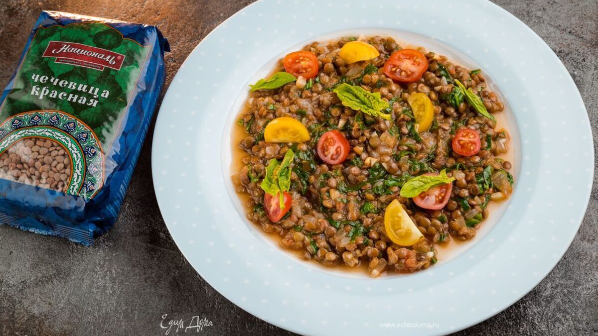 Красная чечевица с томатами и шпинатом