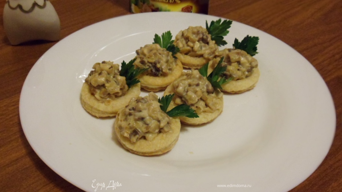 Волованы — это выпечка из слоеного теста в виде маленьких стаканчиков. Такая закуска незаменима к праздничному или фуршетному столу. Наполнить волованчики можно грибным или мясным рагу, печеночным паштетом, сливочным сыром с красной икрой, фруктами и т.д. Я использовала готовое слоеное тесто. Начинка из обжаренных шампиньонов — моя любимая. У меня получилось 16 волованчиков.