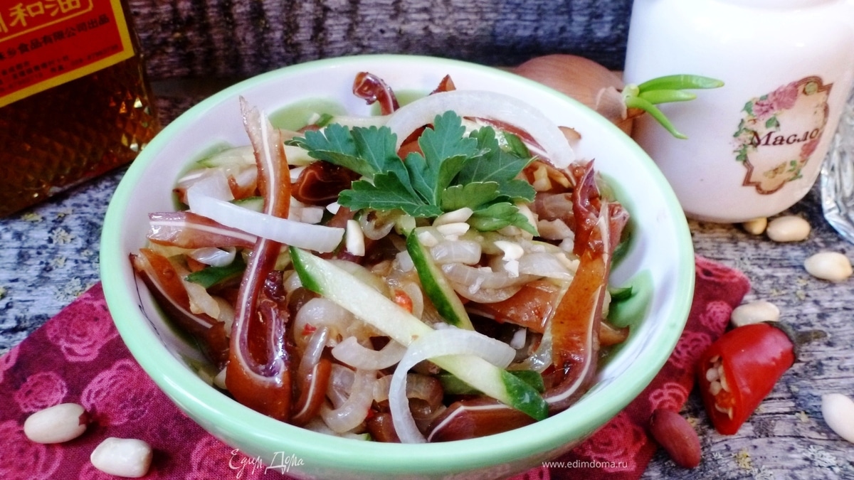Салат из свиных ушей с овощами и арахисом