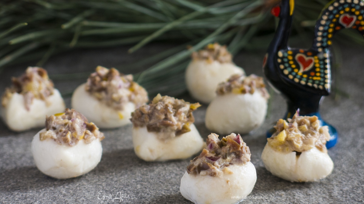 Начиняем шарики. Составим композицию, поняла, что мне эта картина напомнила цыплят из скорлупок, случайно получился «абстрактный символ» года. Приятного аппетита!