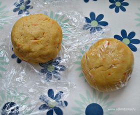 Разделите тесто на две части, сформируйте шары, заверните их в пищевую пленку и положите на 30 минут в морозильную камеру.