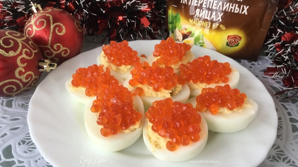 Заполните получившейся массой белки, сверху выложите икру. - Шаг 5
