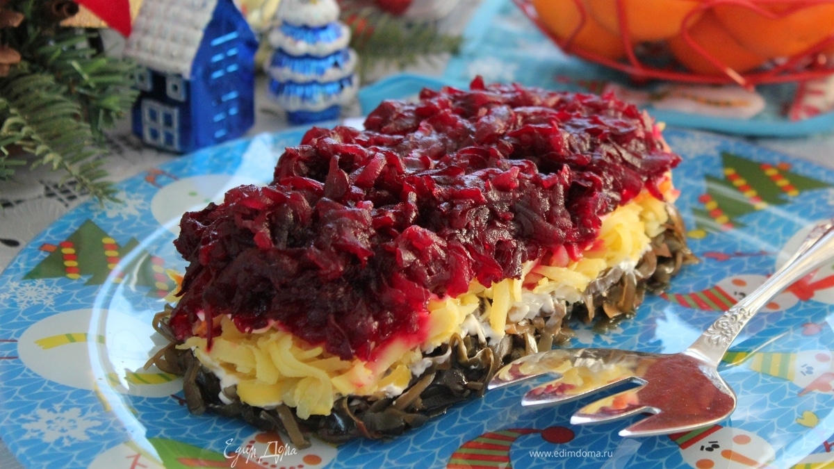 Постный салат «шуба с морской капустой»