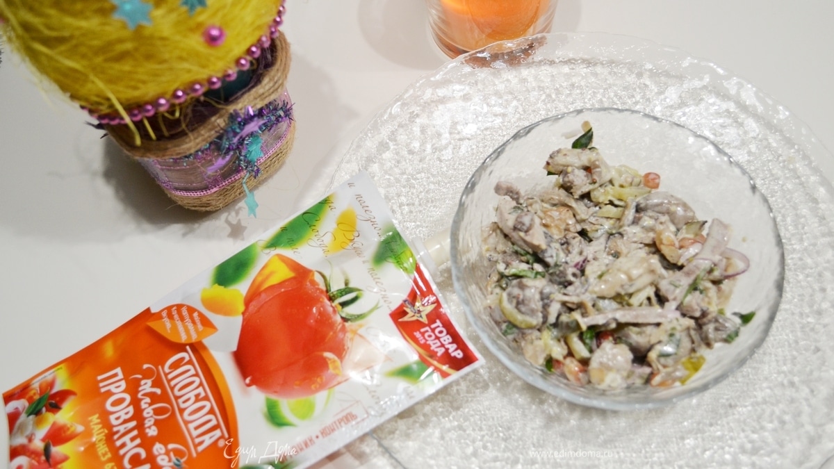 Иногда после праздников остаются кусочки мяса птицы, буженины, которые можно превратить в сытный и вкусный салат.