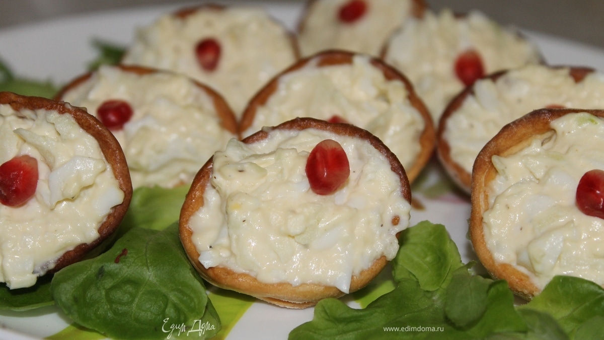 Заполните приготовленные ракушки-тарталетки салатом, украсьте зернышком граната или как вам пожелается, и разложите на листья салата. - Шаг 6
