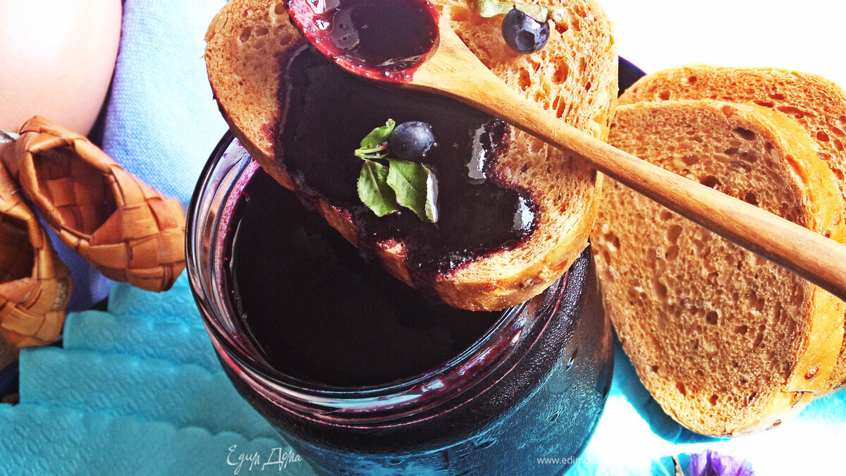 Летний привет всем от меня, я к вам вот с такой баночкой черничного джема, можно с хлебом-гренкой))) Готовить можно с любой ягодой, даже с замороженной. За идею спасибо Анне!